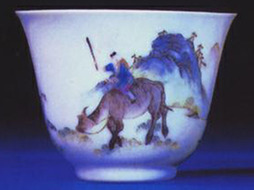 粉彩放牧圖茶杯·清