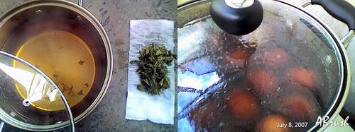 撈出茶葉,然后把包好的大料包放進去,在鍋里加幾勺鹽和醬油加重味道,放入雞蛋小火煮10分鐘。