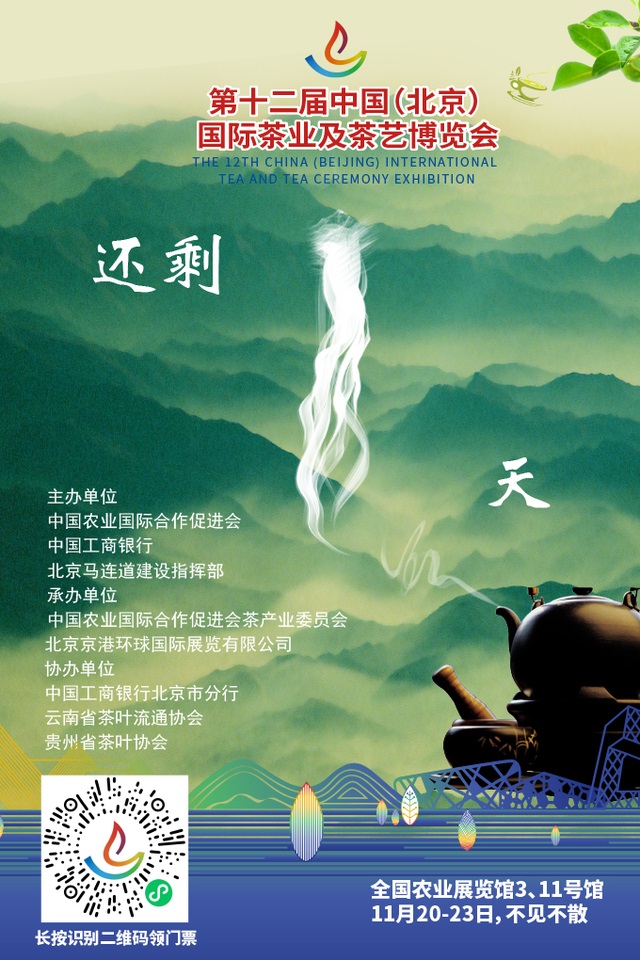 萬事俱備,就等你來!第12屆中國(北京)國際茶業(yè)暨茶藝博覽會(簡稱“北京茶博會”)將于2020年11月20-23日在全國農(nóng)業(yè)展覽館3、11號館開展!