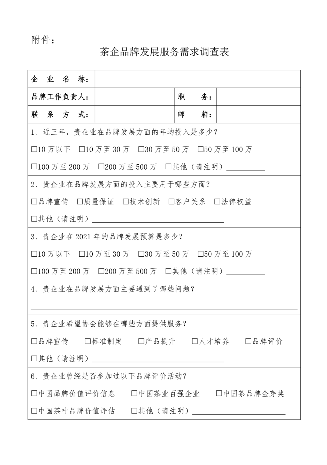 關(guān)于開展茶企品牌發(fā)展服務(wù)需求調(diào)查的通知
