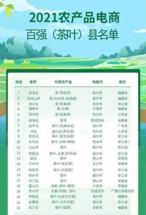 本文標(biāo)題:茶業(yè)新聞:22縣市因茶入圍電商百強名單,潮州饒平上榜 - 茶葉新聞_中國茶葉新聞_國際茶葉新聞