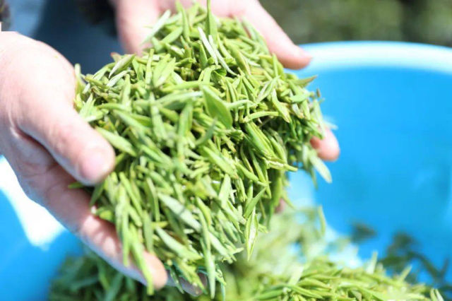 “因?yàn)殡x家比較近,所以每年采茶的時(shí)候我都會(huì)來(lái)。老板以每斤40元的價(jià)格進(jìn)行收購(gòu),中午的時(shí)候還發(fā)面包和水。”肖書琴一邊熟練地采摘著嫩綠的茶葉,一邊笑著說(shuō)。采茶只能掐枝葉上的一點(diǎn)點(diǎn)嫩芽,所以采一斤茶需要大半天的時(shí)間。