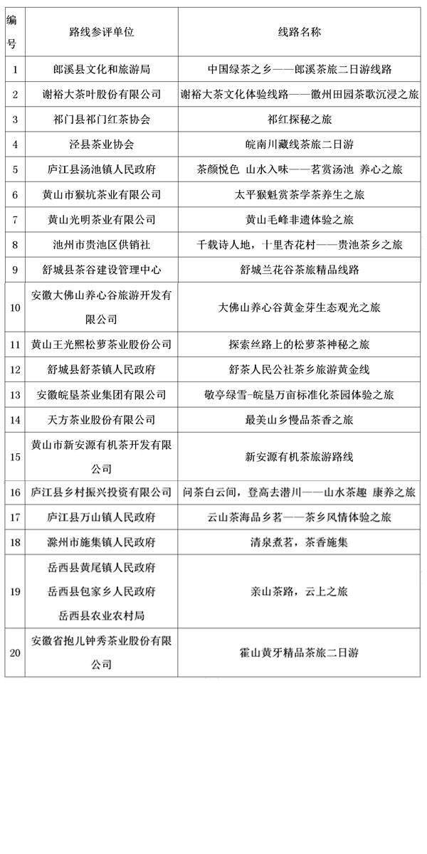 “安徽省首屆十大最美茶旅線路”前20入圍名單出爐