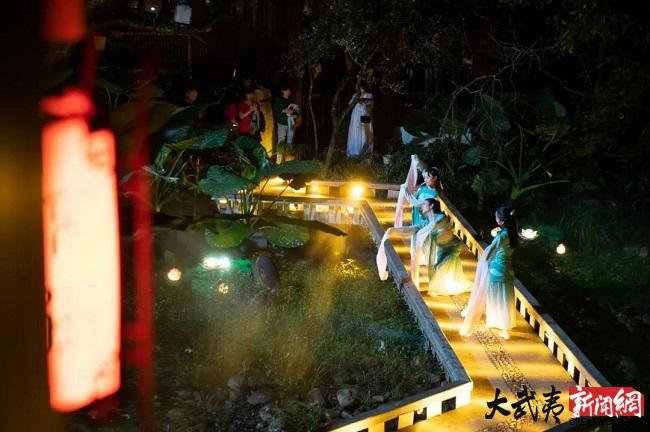 中秋之夜,月滿情濃。武夷山宋街景區(qū)內(nèi),流光溢彩,人流如織。吃茶、聽曲、猜燈謎......伴隨著古街內(nèi)的典雅的古琴聲“宋風(fēng)當(dāng)潮 · 武夷月夕”活動(dòng)擺茶開席,歌舞秀+民俗表演,將歷史上武夷山中秋夜民間祭月的場(chǎng)景予以復(fù)原,讓現(xiàn)場(chǎng)游人穿越時(shí)空,感受傳統(tǒng)中秋的賞月民俗。